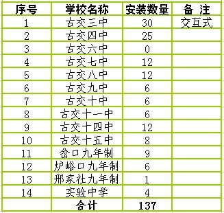 啟明星公司與古交市2012薄弱學(xué)校改造多媒體安裝數(shù)量統(tǒng)計(jì)表